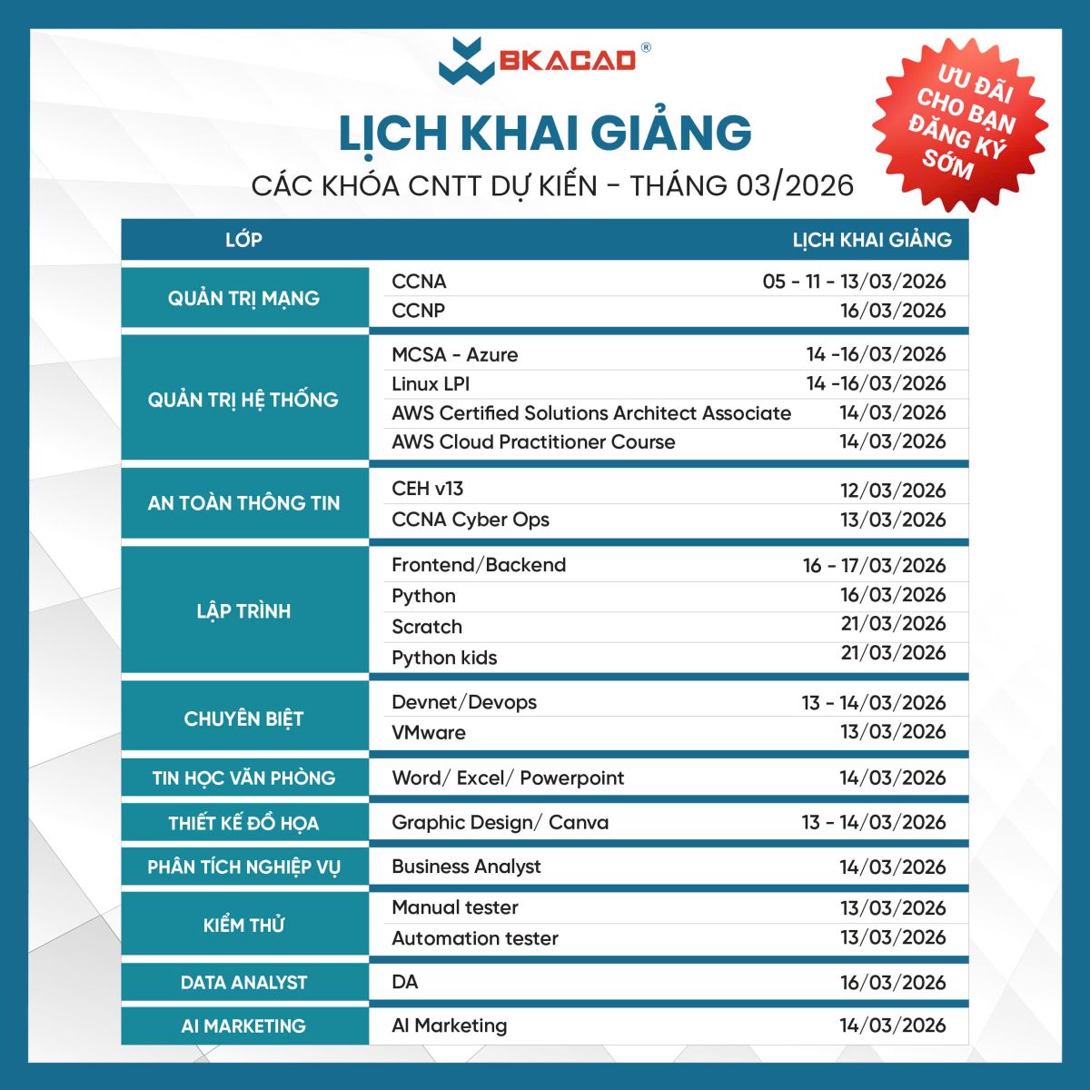 Lịch khai giảng các khóa chứng chỉ Quốc tế tháng 03/2026